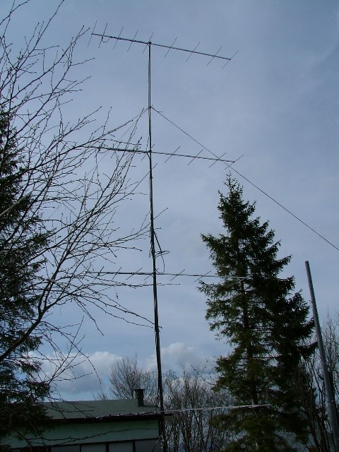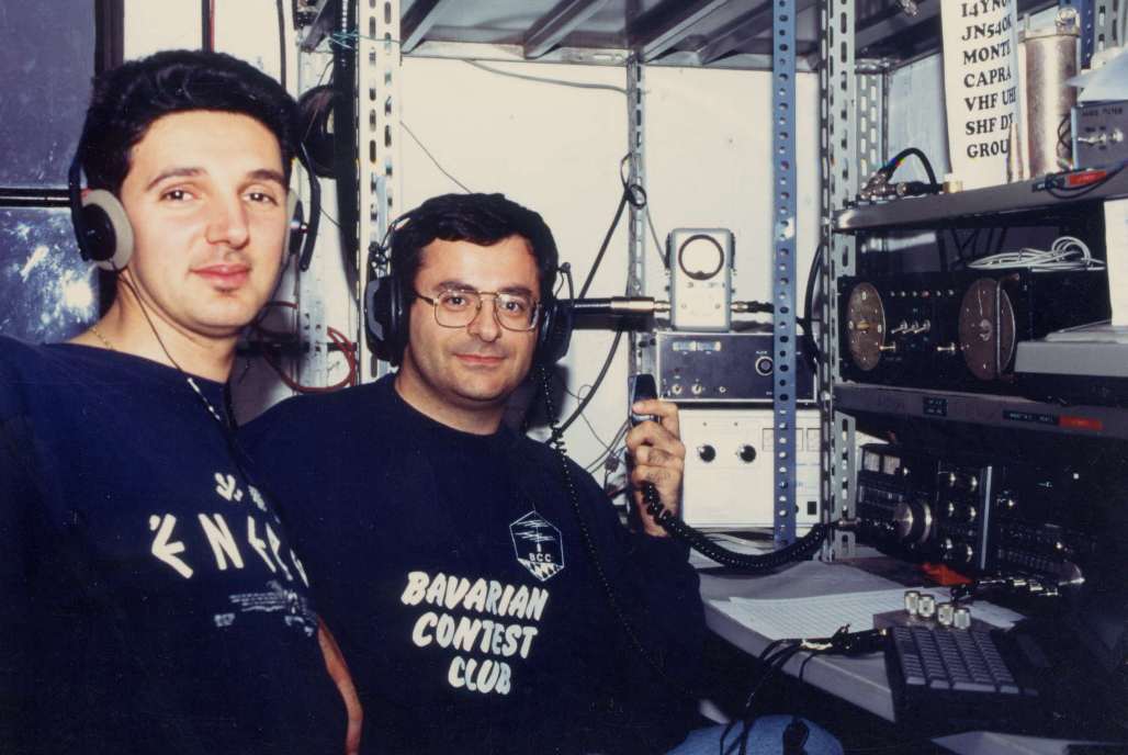 Fausto IW4EHZ, Giuseppe IK4HLQ and me installing 4x9el for may 2004 contest